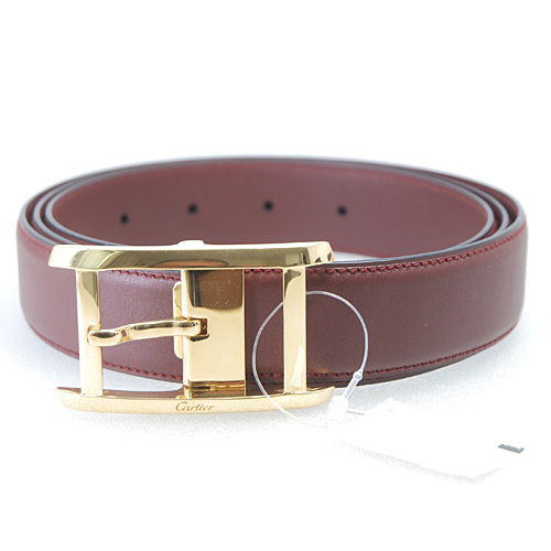 - 未使用品/試着程度 カルティエ タンク ベルト ボルドー×ゴールド金具 最長115cm程(16550)