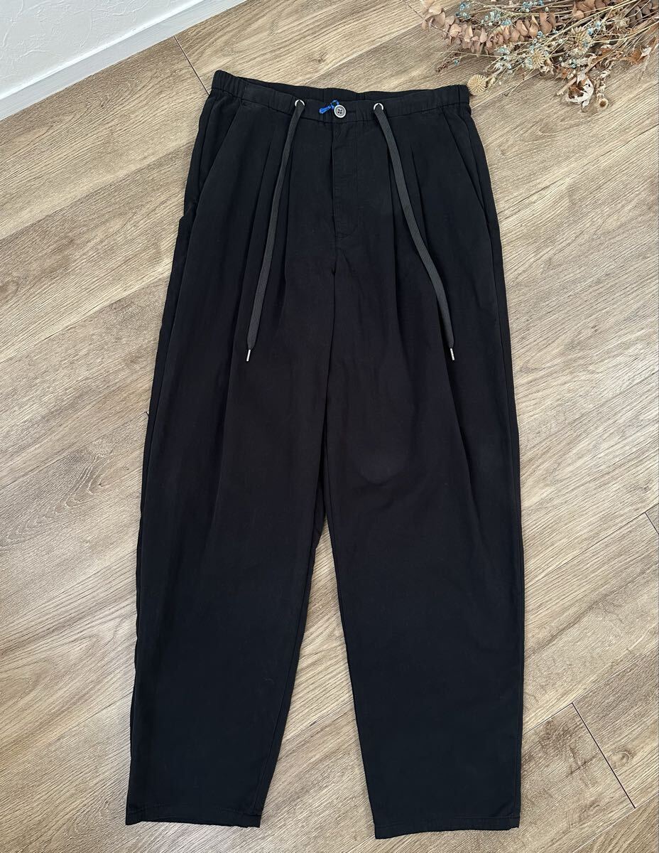 - タグ付き 未使用 コットンナイロンタックパンツ ブラック Lサイズ
