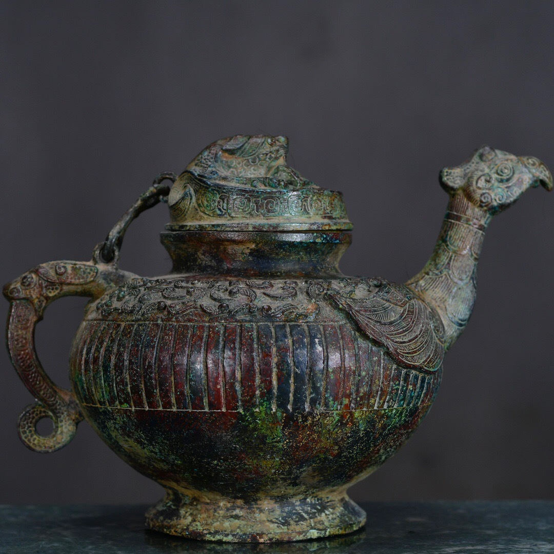 - 『館蔵珍品 漢 青銅製 鶏頭壺 青銅器 置物 賞物』稀少珍蔵品 古賞物 貴重物品 収蔵品 中国古美術 時代物 古董品