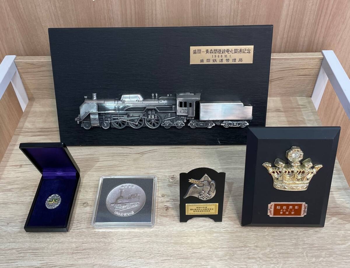- 鉄道グッズ セット 現品限り 現状お渡し JR効績賞/青森間複線電化開通記念/鉄道100年記念メダル/表彰盾/総裁表彰 盛岡鉄道管理局