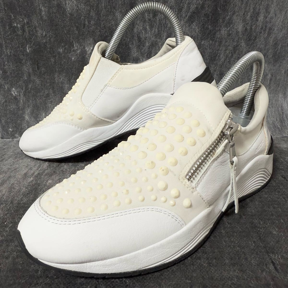 > GEOX ジェオックス ローカットスニーカー カジュアルスニーカー サイドジップ サイドゴア ホワイト系 US6 *EM