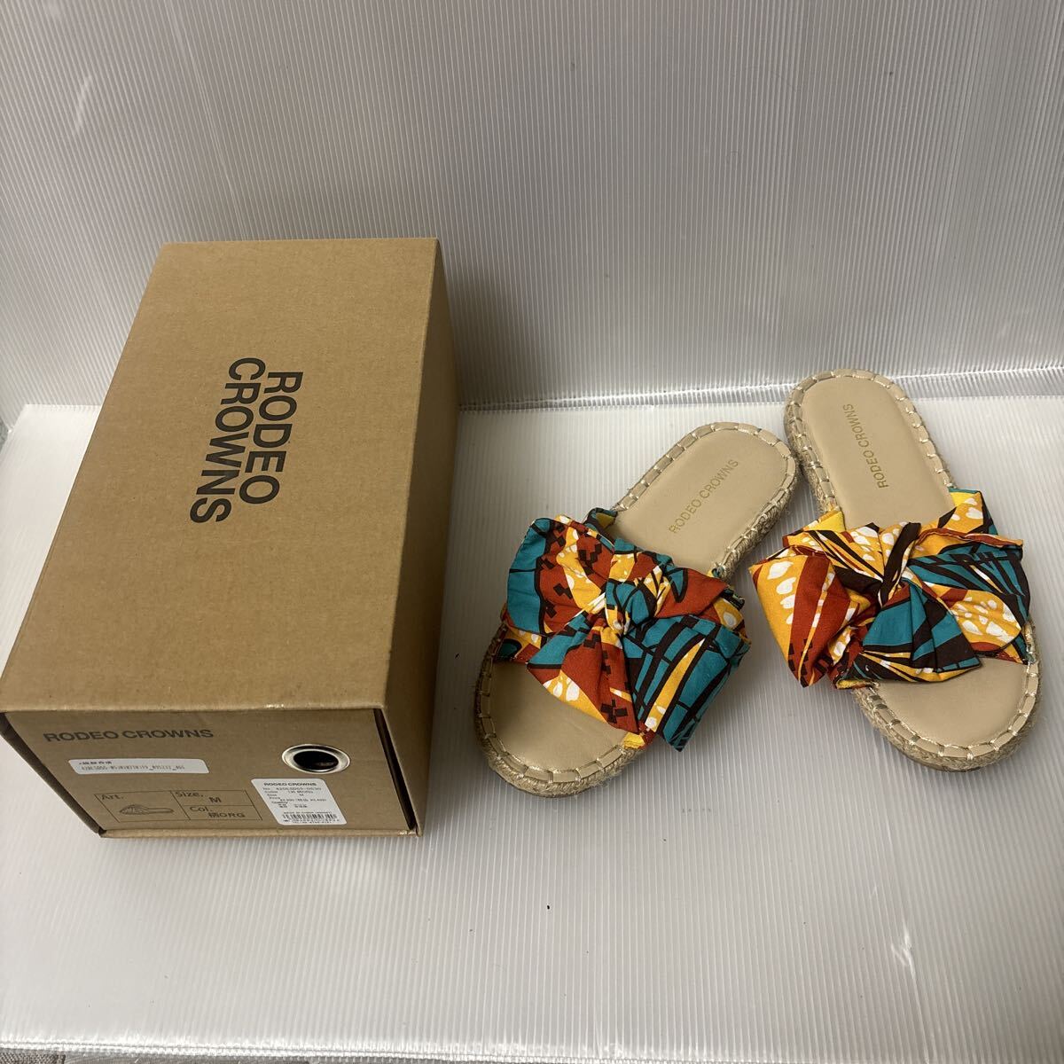 > ロデオクラウンズ サンダル リボン 柄ORG Mサイズ ロデオ RODEO CROWNS WIDE BOWL