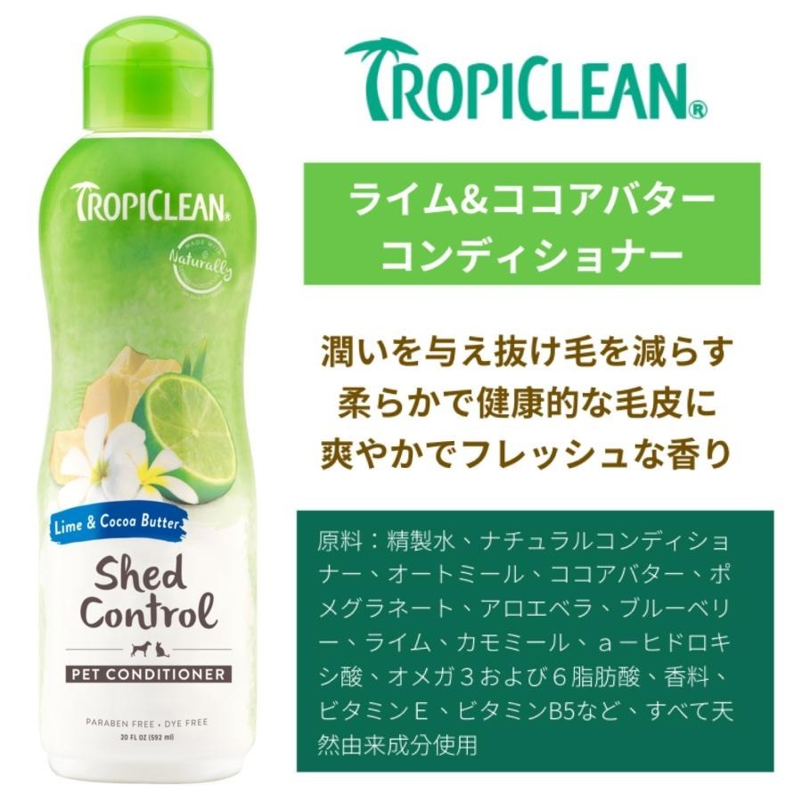 > トロピクリーン犬猫用コンディショナー・ライム&ココアバター・米国製・Tropiclean Shed Control Pet Conditioner 抜け毛を抑える