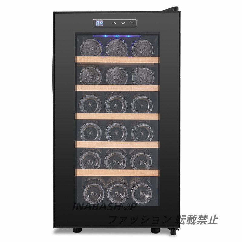 > ワインクーラー18ボトルカウンタートップワインセラー冷蔵庫小型自立型一定湿度ワイン冷蔵庫デジタル温度表示ガラスドアブラック-ブナ材棚