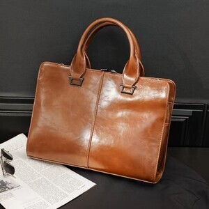 - ビジネスバッグ メンズ 大容量 2way トートバッグ 肩掛け A4 ショルダーバッグ バッグ 通勤 かばん 手提げかばん 軽量 革鞄 ブラウン