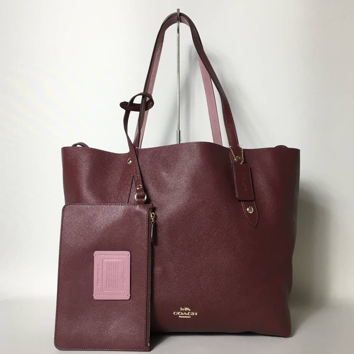 > 77B263|美品|コーチ トートバッグ ボルドー×ピンク リバーシブル