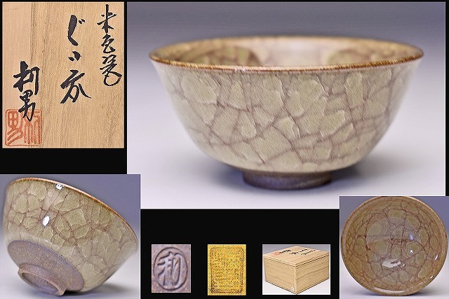 > 古川利男 ★ 米色瓷 ぐい呑 ★ 共箱 共布 ★ 人気陶芸家 ★ 京焼 ★ 清水焼 ★酒器 ★ 酒杯 ★ 盃 ★ 杯 ★ 味わい深い逸品 ★