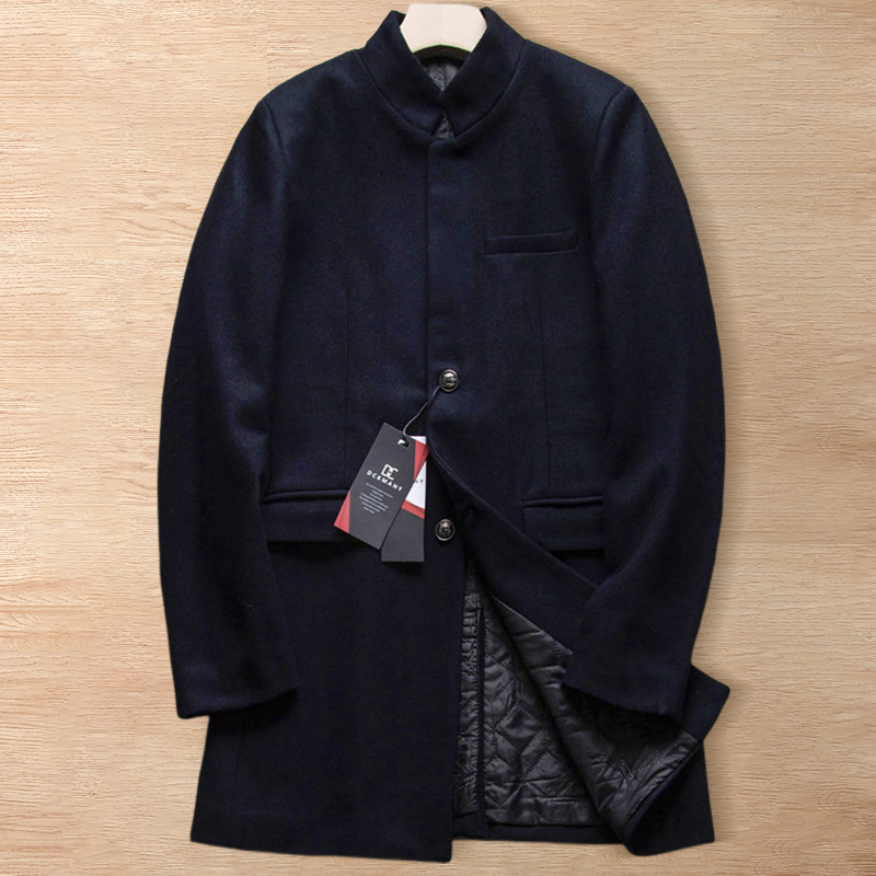 > Y673-M程度 ネイビー 新品DCKMANY ウール混 チェスターコート メンズ 立ち襟 ジャケット 中綿 ミドル ルーズ ビジネス 秋冬 アウター