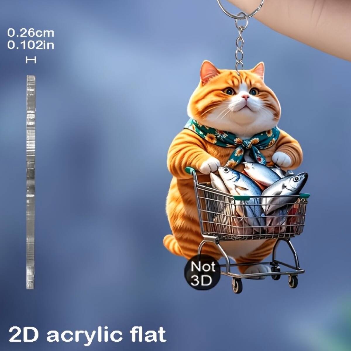 > キーホルダー 買い物するデブ猫 アクリル 平面 2D 魚を買うねこ アクリル 6cm 吊り下げ かわいい ネコ 車 バックミラー インテリア t7920