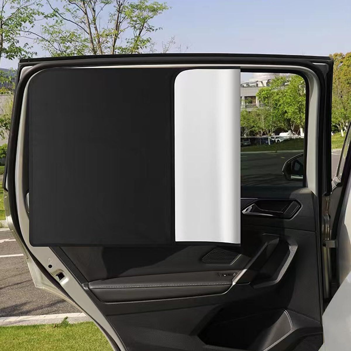 - 車用 カーテン 遮光 マグネット内蔵 UVカット プライバシー保護 車中泊 日よけ&目隠し カー用品 ブラック (後部座席用, 銀黒 1枚)