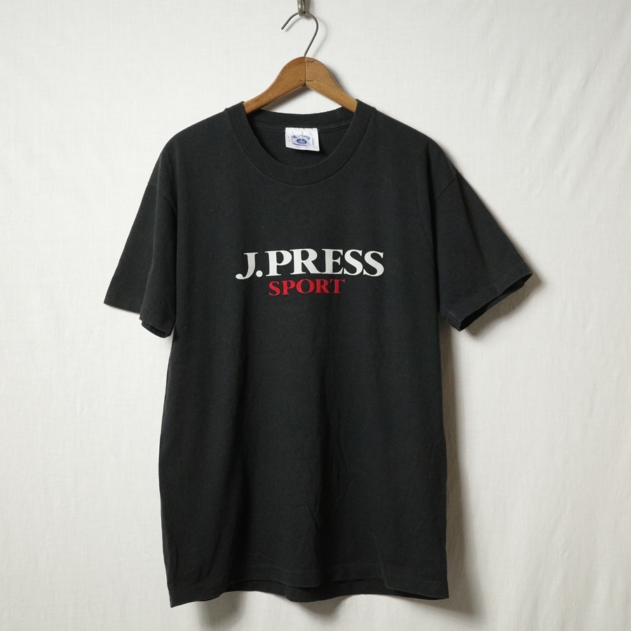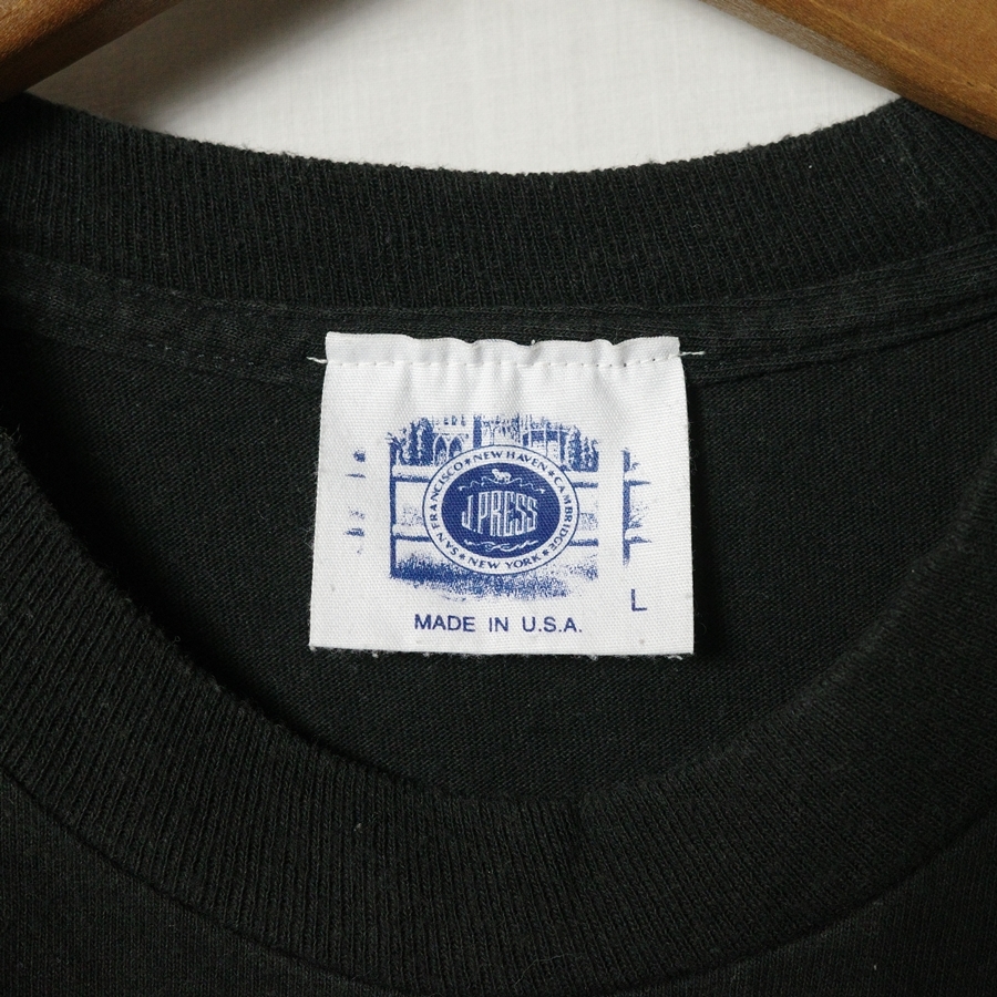 > USA製 J.PRESS フロッキープリント Tシャツ L 黒 / 90s オンワード樫山 ロゴ シングルステッチ