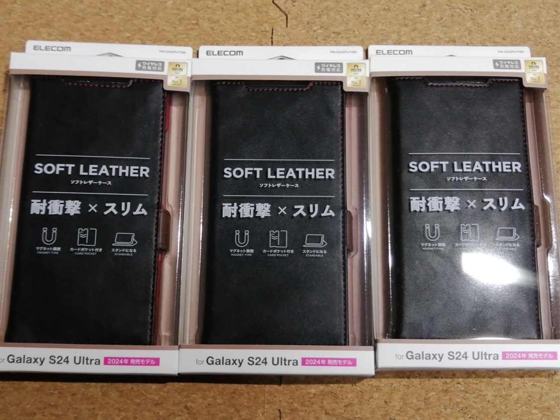 - 【3個】エレコム Galaxy S24 Ultra SC-52E レザーケース 手帳型 ブラック PM-G242PLFYBK 4549550314541