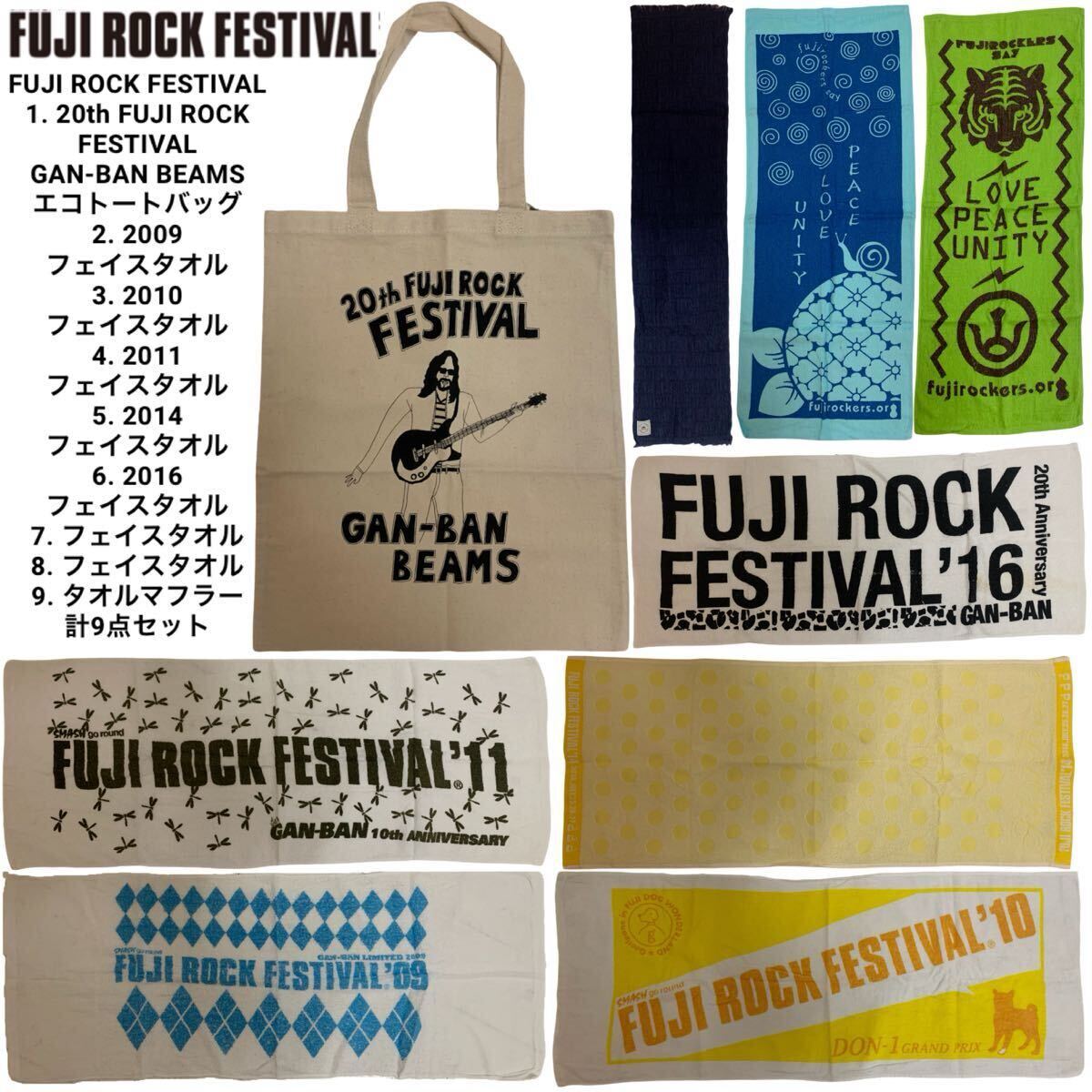> FUJI ROCK FESTIVAL フジロック フェスティバル 2009.2010.2011.2014.2016… エコトートバッグ フェイスタオル 9点セット アーカイブ