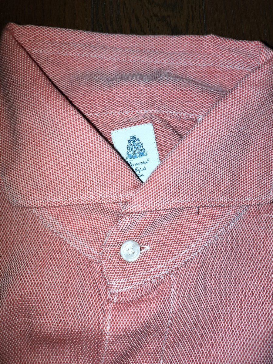 > イタリア製 フィナモレ finamore napoli 手縫い 長袖シャツ 無地 高級! 格安! レギュラーカラー L ピンク オレンジ