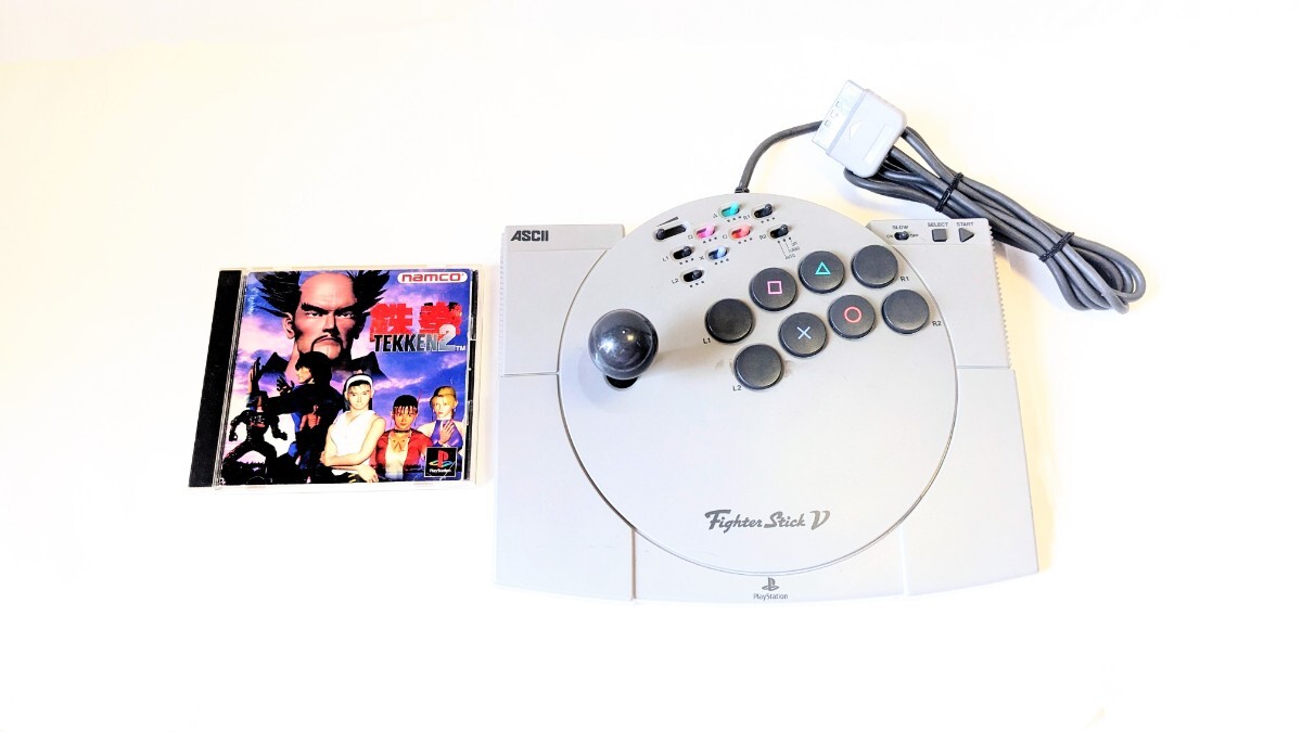 > 動作品・清掃済み★ASCII/アスキー PlayStation専用 「ASC-0501J:SLPH-00003」ファイタースティックV + 鉄拳2ソフト まとめて