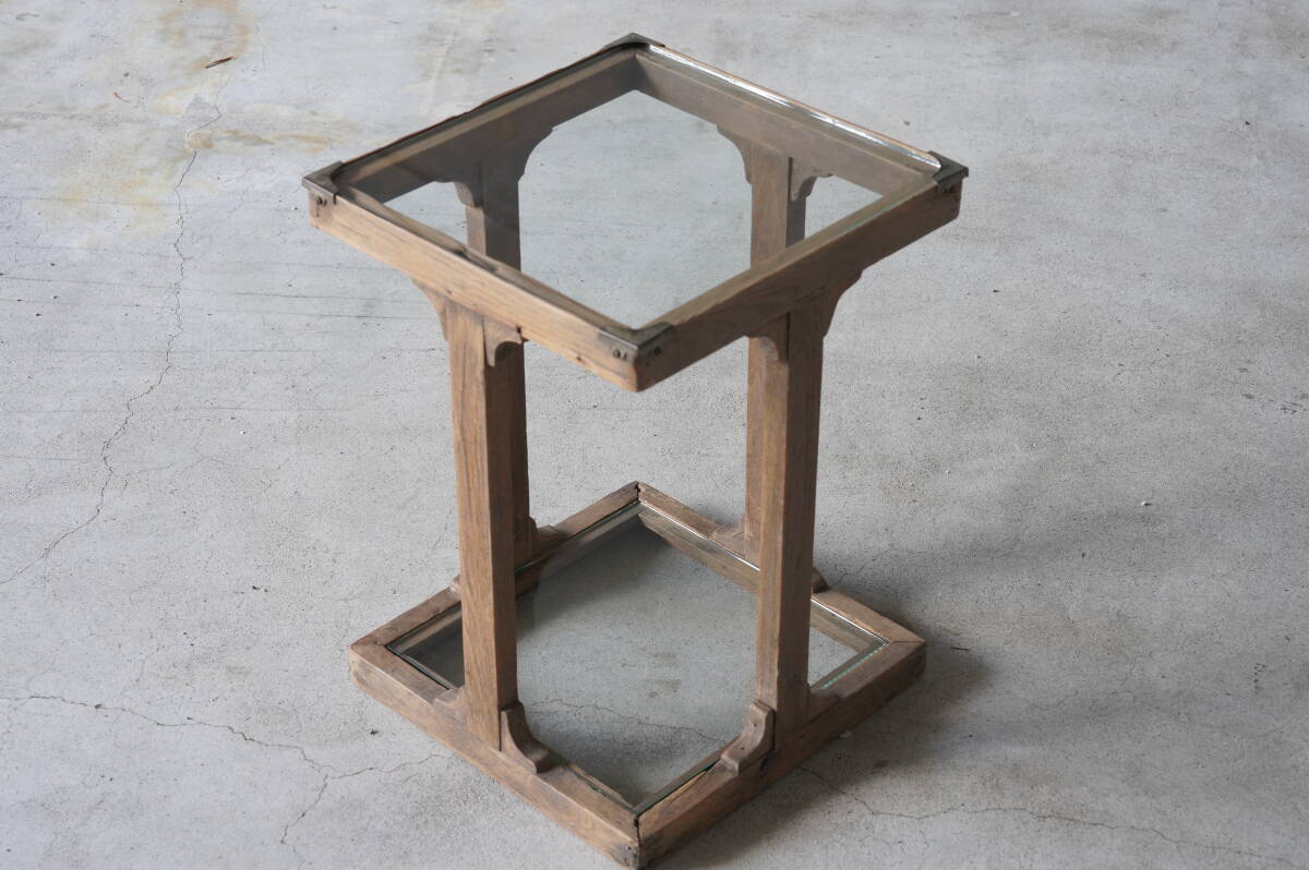 - サイドテーブル チーク材 テーブル ガラステーブル 無垢材 インテリア ディスプレイ 古木 古材 アート 朽木 インド ヴィンテージ