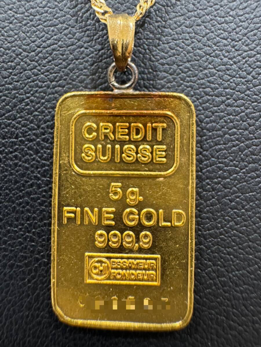 - 【純金製・インゴット・ネックレストップ】K24 999.9 K18 ペンダントトップ FINE GOLD CREDIT SUISSE 総量5.1g バチカンK18