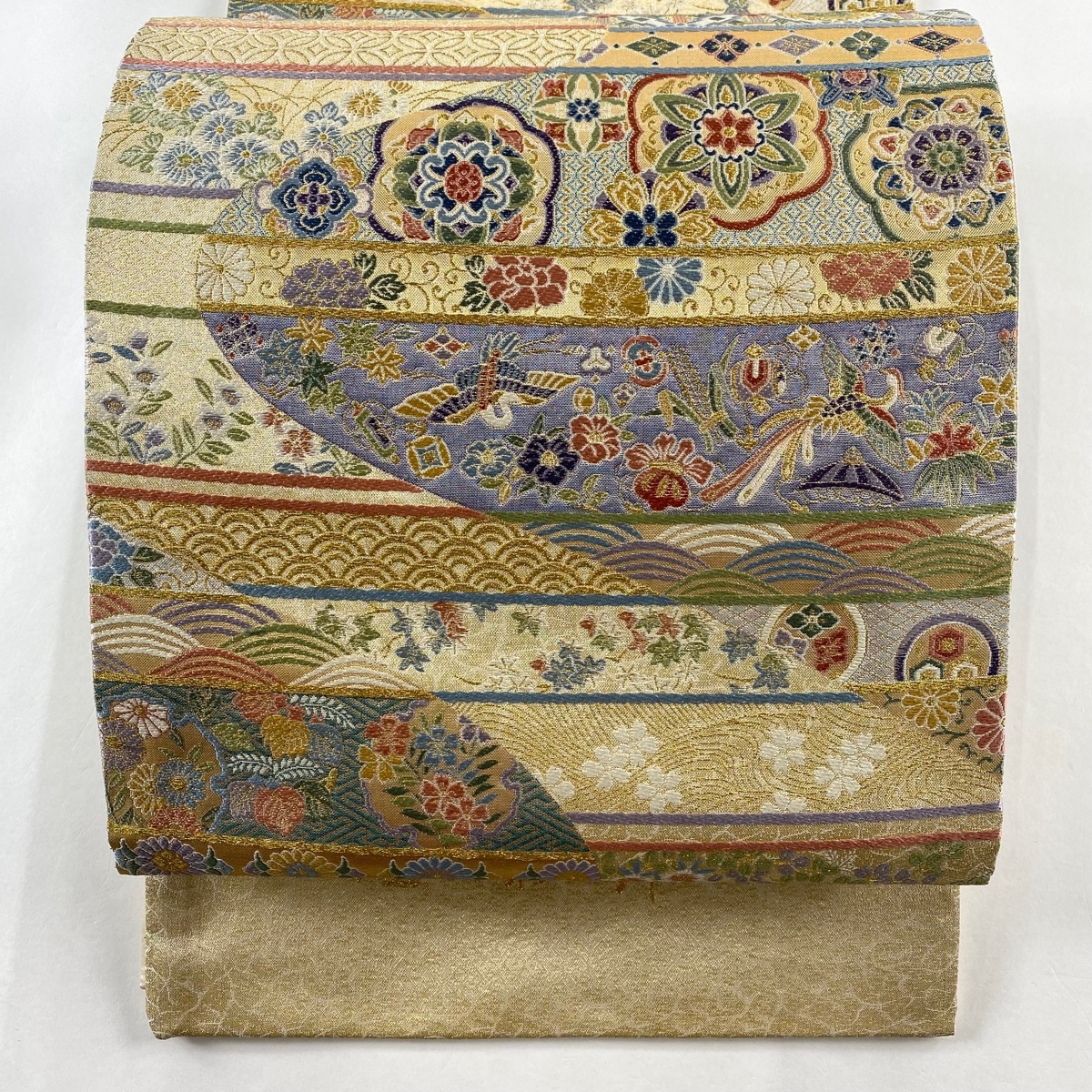 > 袋帯 美品 秀品 煌彩錦 雪輪 草花 金糸 箔 クリーム 六通 正絹 【中古】