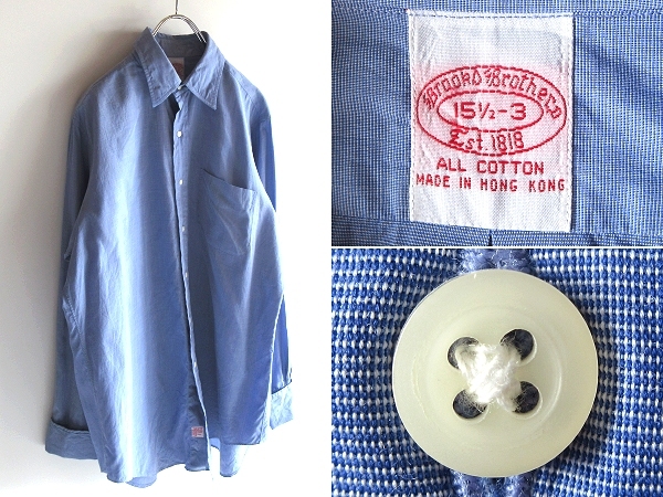 > 希少 80sビンテージ Brooks Brothers ブルックスブラザーズ コットン ダブルカフス ドレスシャツ 15H-3 ブルー 青 ネコポス対応