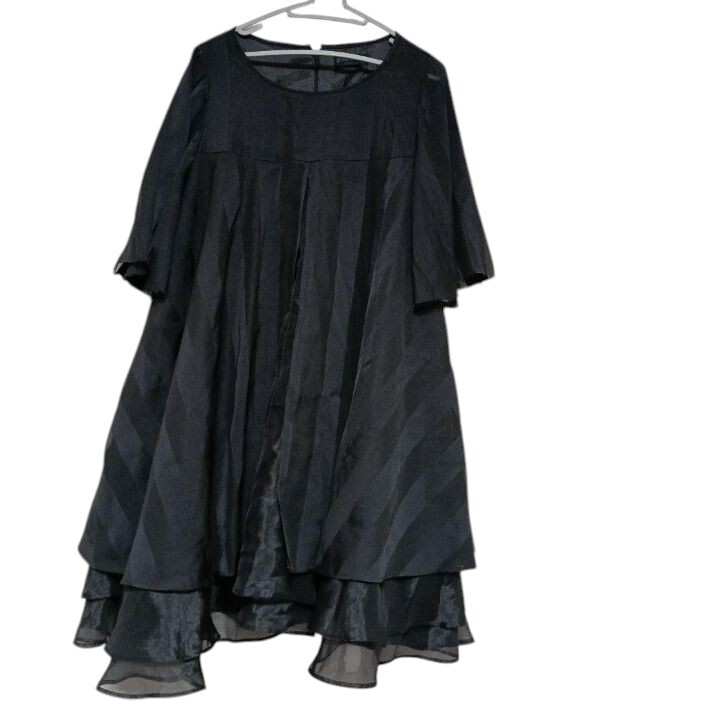 > 美品☆ジュネビビアン☆パニエ付きふんわりストライプデザインワンピース・パーティー・結婚式・アンティーク ブラック merlot