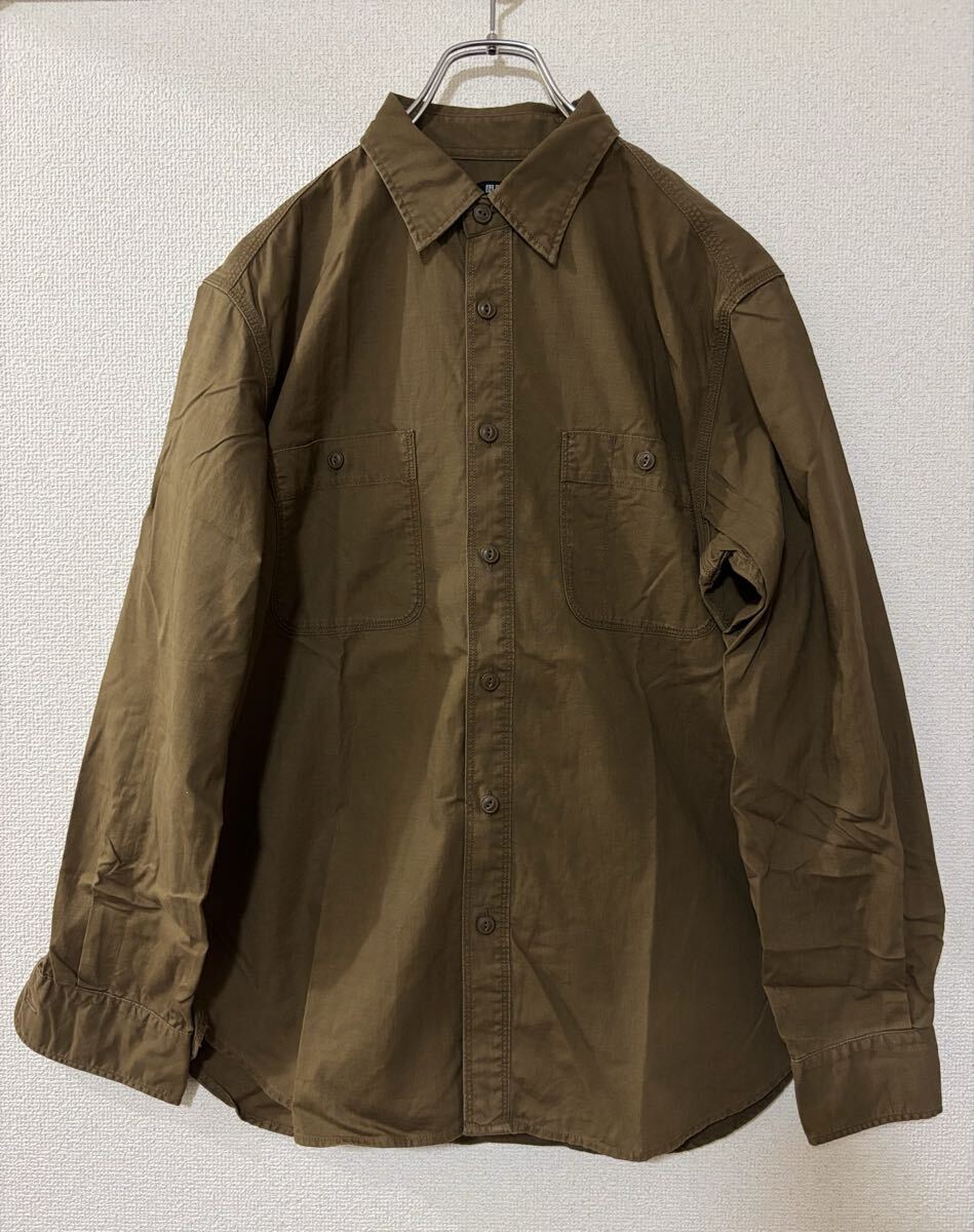 > ユニクロ ワーク ウォッシュ シャツ 長袖 シャツ Mサイズ ブラウン メンズ レディース 綿100% 古着 無地 胸ポケット 0816