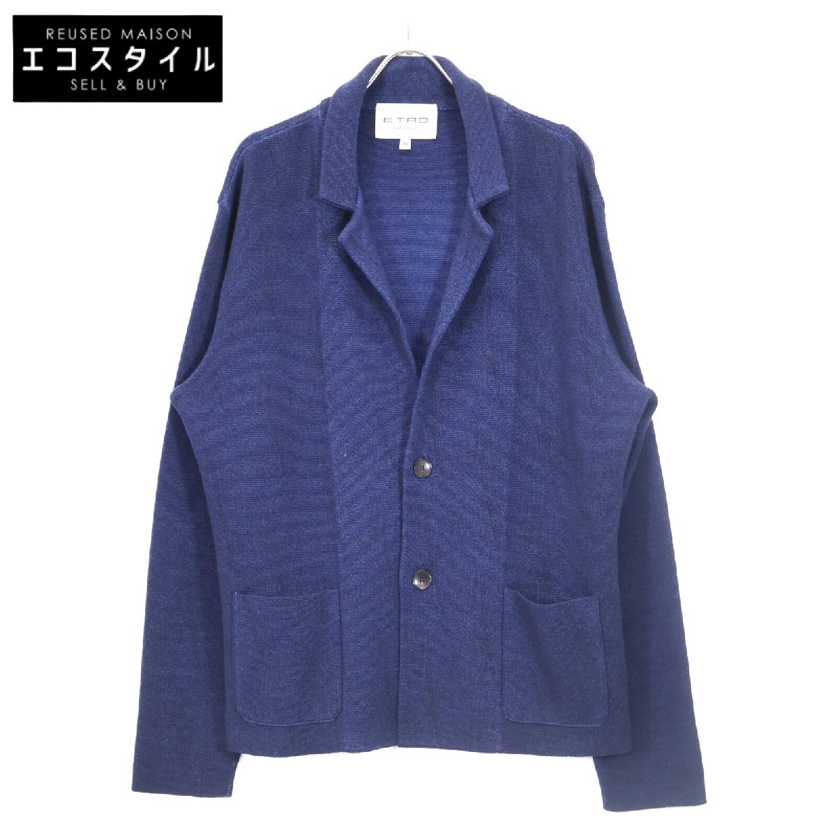 > ETRO エトロ ネイビー ウールテーラードニットカーディガン ネイビー 3XL ジャケット ウール メンズ 中古