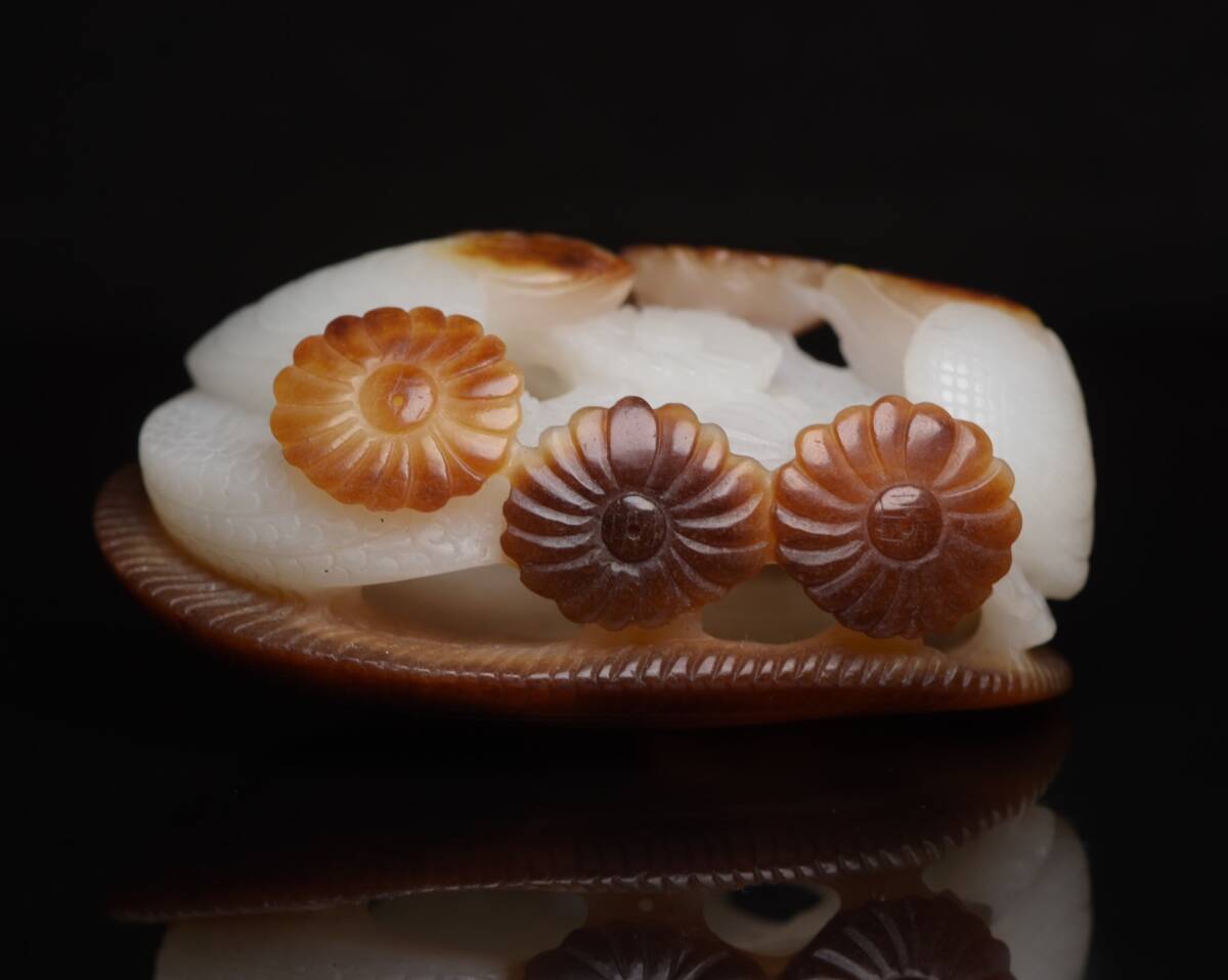 - 『館蔵珍品 和田玉製 細密彫 安居樂業 置物 賞物』稀少珍蔵品 古賞物 貴重物品 収蔵品 中国古美術 時代物 古董品