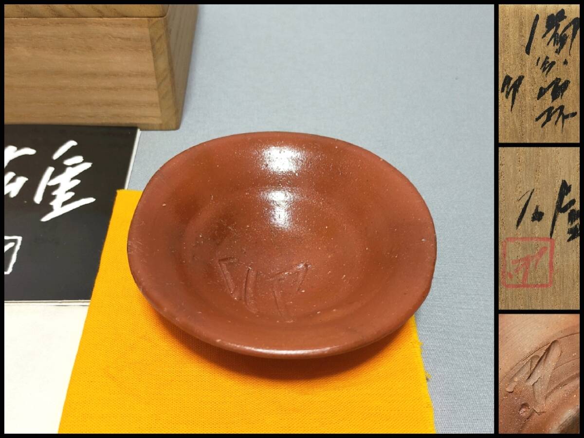 - FA29 備前焼 酒器 人間国宝 藤原雄 造 備前酒盃 干支 卯 ぐい呑 栞・共布・共箱