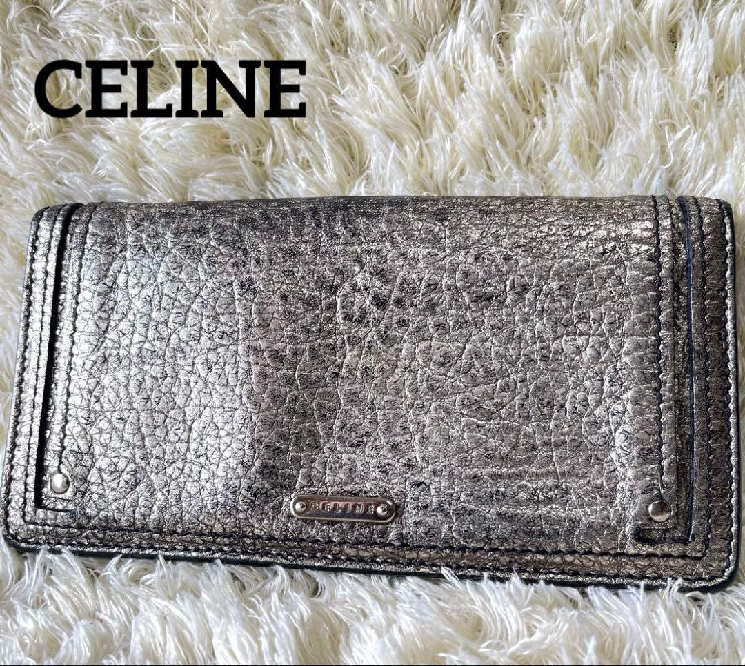 - CELINE セリーヌ 長財布 ポケット多数 小銭ジップ シルバー 銀 メンズ
