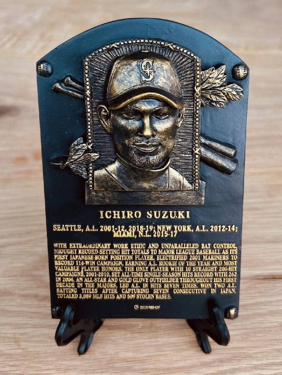 8/10 球場配布 イチロー 米野球殿堂展示 プラーク プレート 盾 2025年 マリナーズ 限定品 非売品