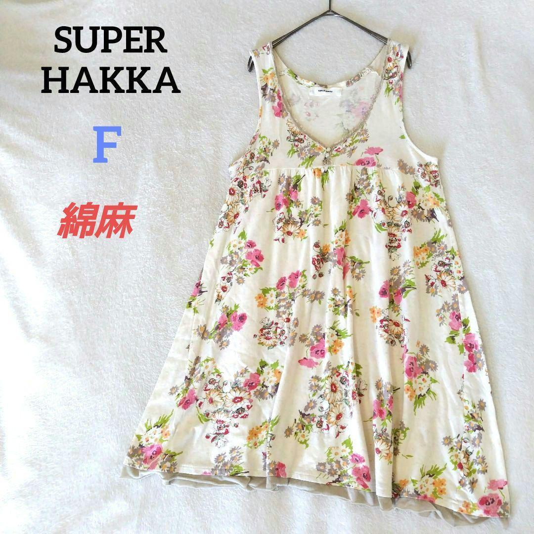 - SUPER HAKKA スーパーハッカ 花柄キャミワンピース フラワープリント 綿麻 ノースリーブ 総柄 コットンリネン ボタニカル