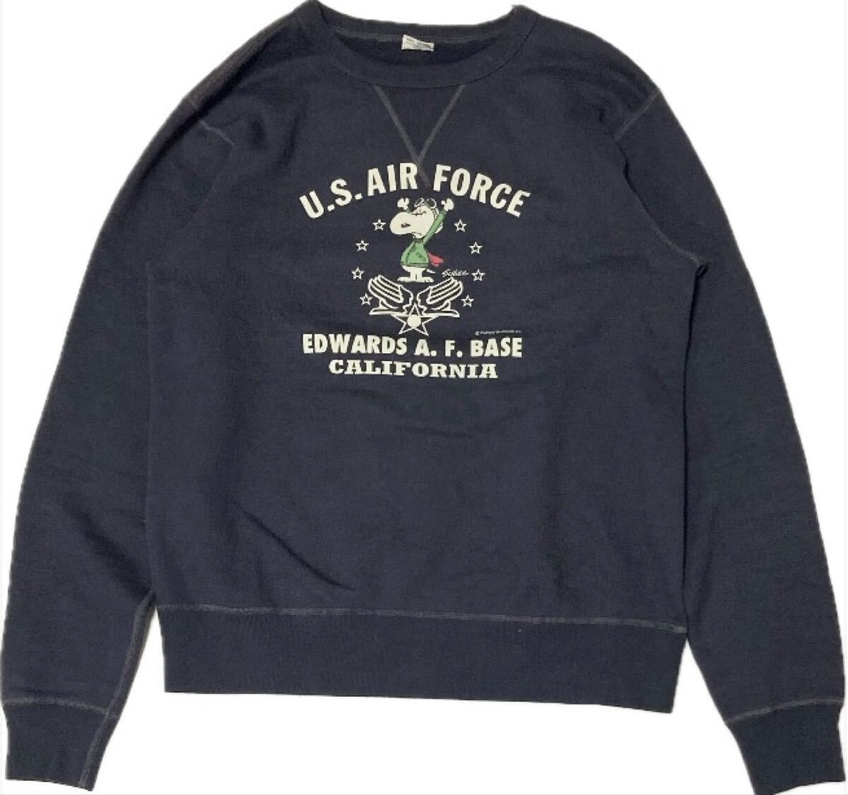 > バズリクソンズ/BUZZ RICKSON'S×PEANUTS トレーナー BR67462 「スヌーピー/U.S.AIR FORCES」クルースウェット ブラック