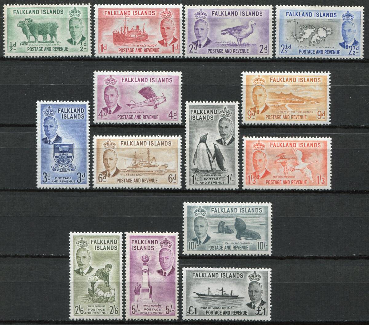 - 英領ロングセット フォークランド諸島 SC:107-120 1952年 ジョージ6世 14種完 未使用 z11024