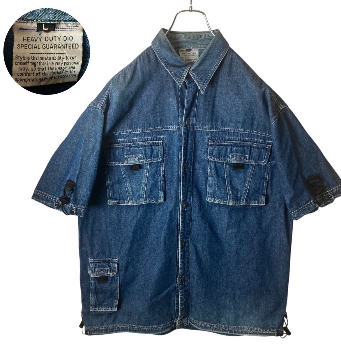 - グッドデザインUSEDインディゴブルー半袖デニムシャツジャケットゆったりサイズ