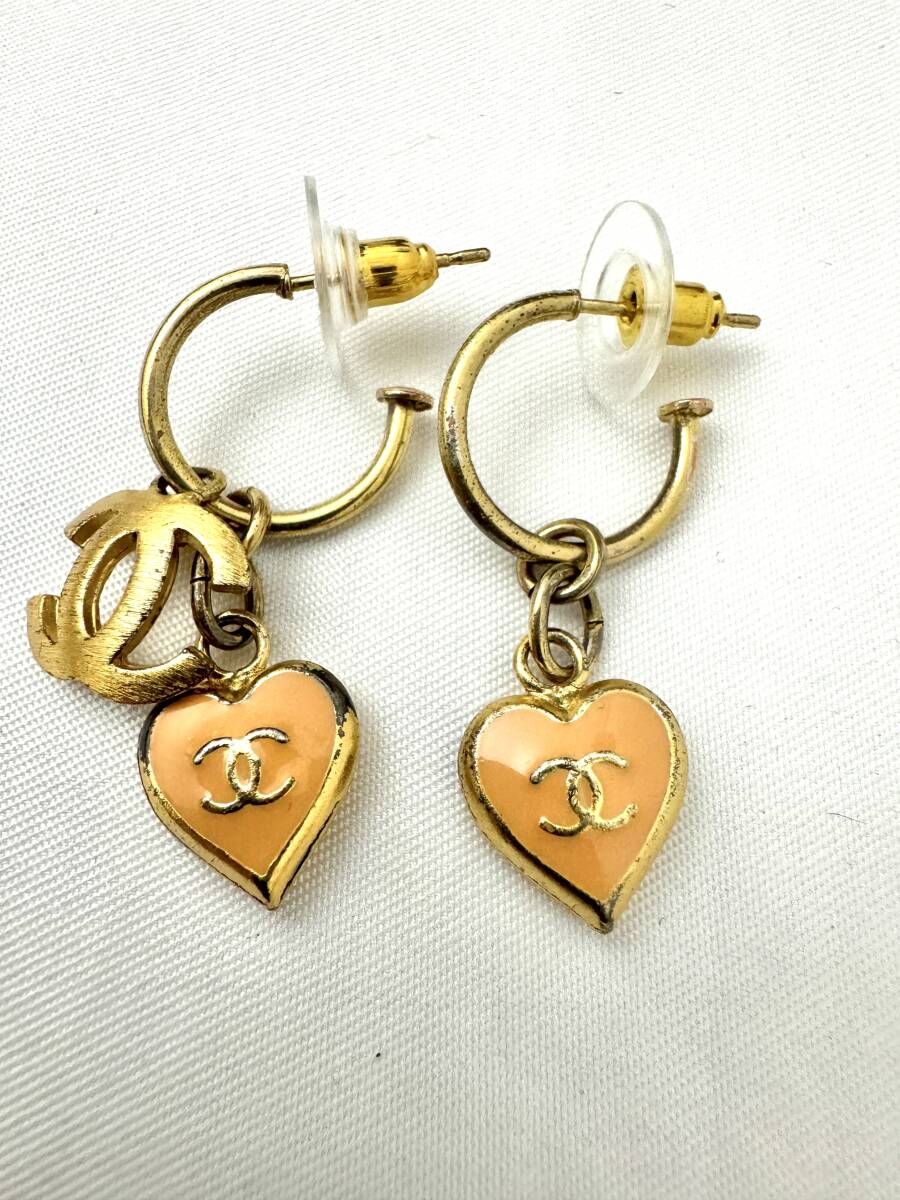 - 7H1715【本物保証】シャネル ピアス フープ スイング ココマーク ハート ゴールド オレンジ 02P CHANEL