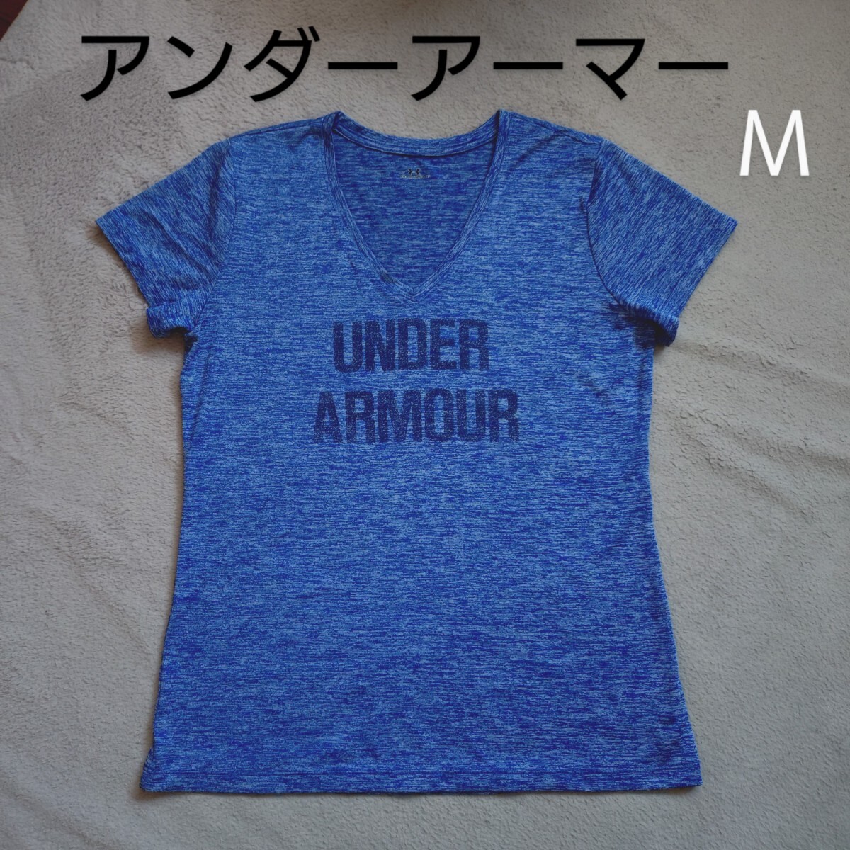 > アンダーアーマー Vネック Tシャツ レディース Mサイズ 半袖 青ブルー スポーツ ウェア ランニング ウォーキング アウトドア