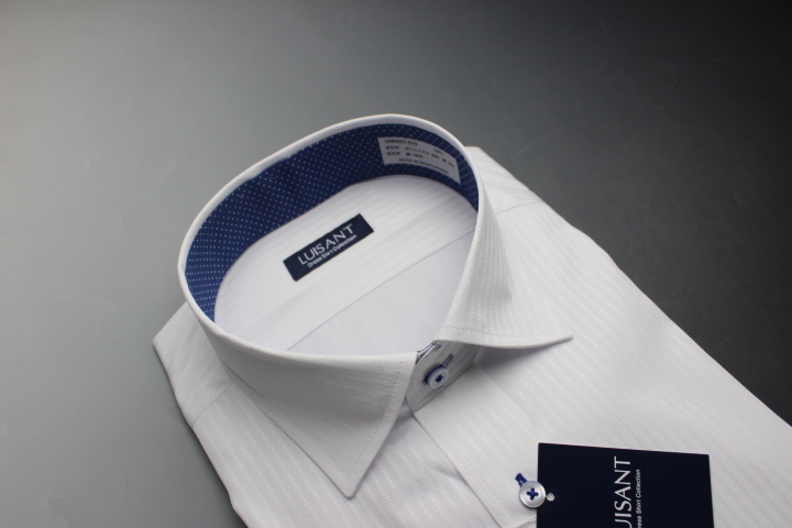 > 送料185円【新品】LUISANT(山喜) ワイドカラーワイシャツ 半袖 /標準体 形態安定  L(41cm)  白ドビー/ストライプ柄/UNN601/019(7B377