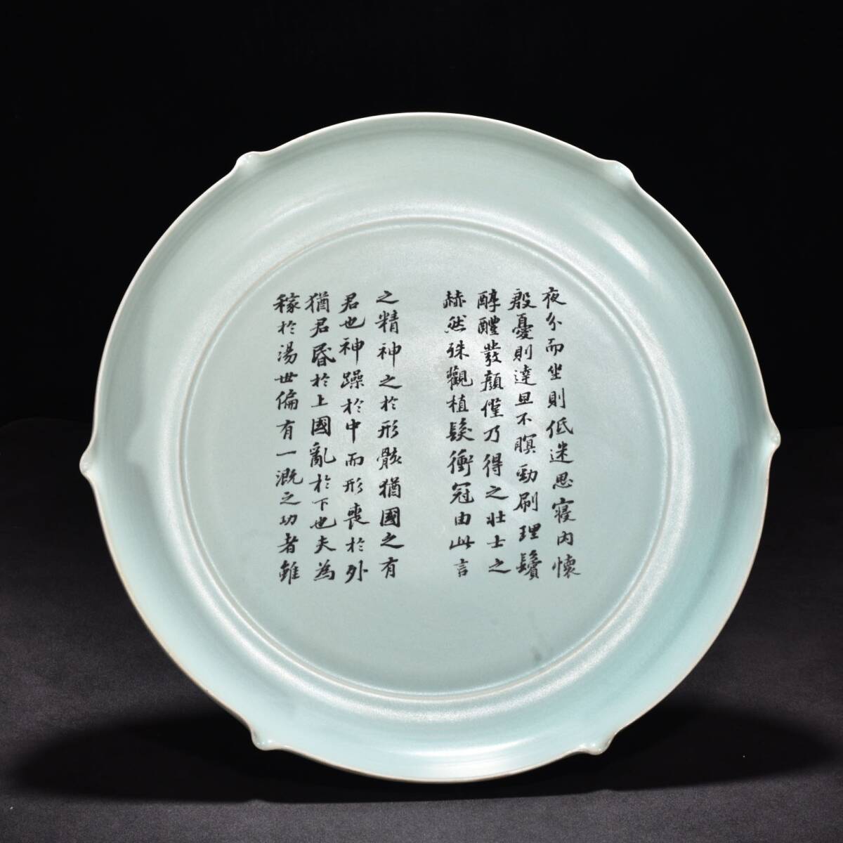 - 時代旧蔵 宋時代 汝窯天青釉 葵口皿 古陶磁器 高さ6.3 cm 幅42.5 cm 珍品旧蔵 古賞物 時代物 818
