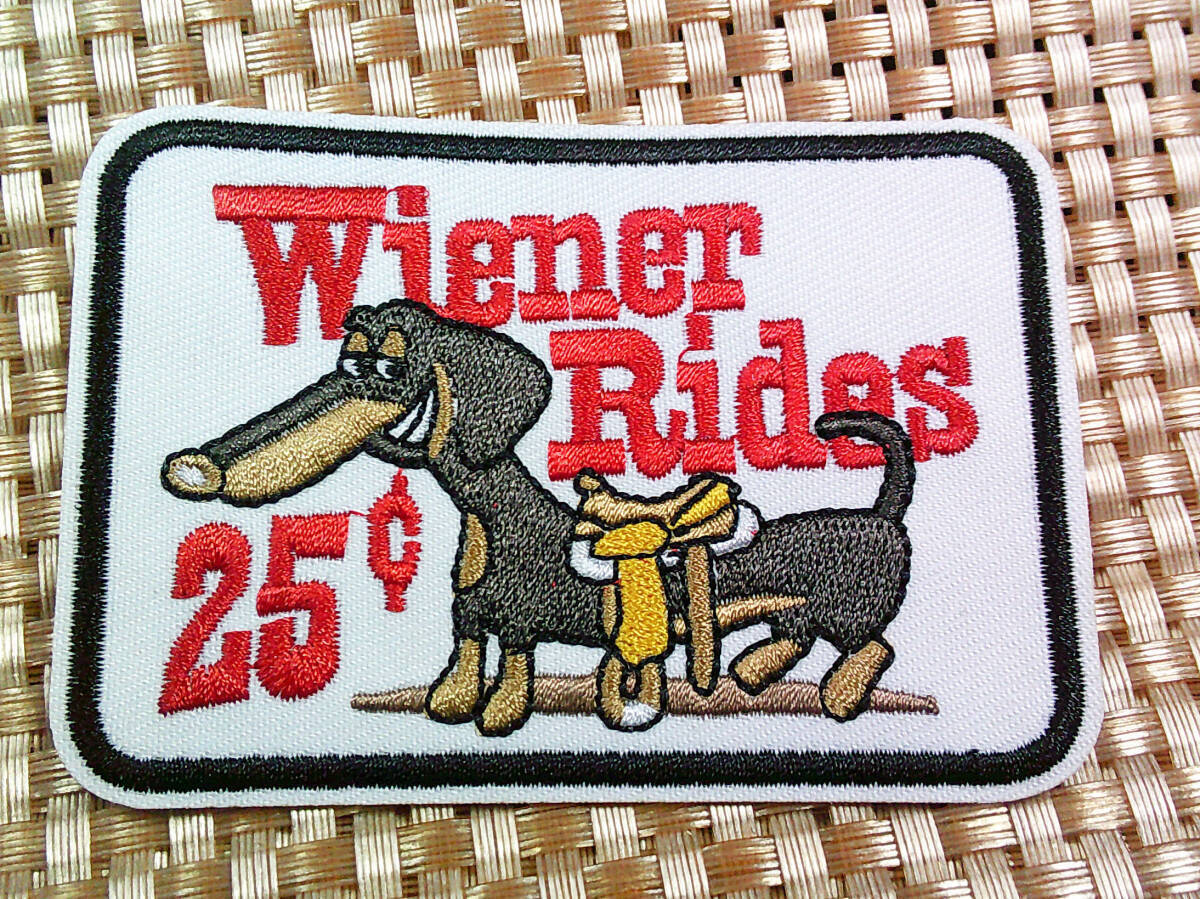 - 《白赤字WR25胴長犬》車魂Wiener Rides 25 Cents ダックスフント 刺繍ワッペン(パッチ)◎アメリカ トラック トラッカー 大型 輸送車