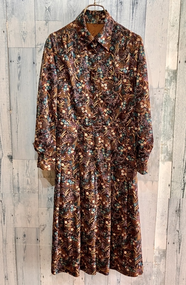 - レトロヴィンテージ 小花柄 ポリエステルワンピース 70s80s