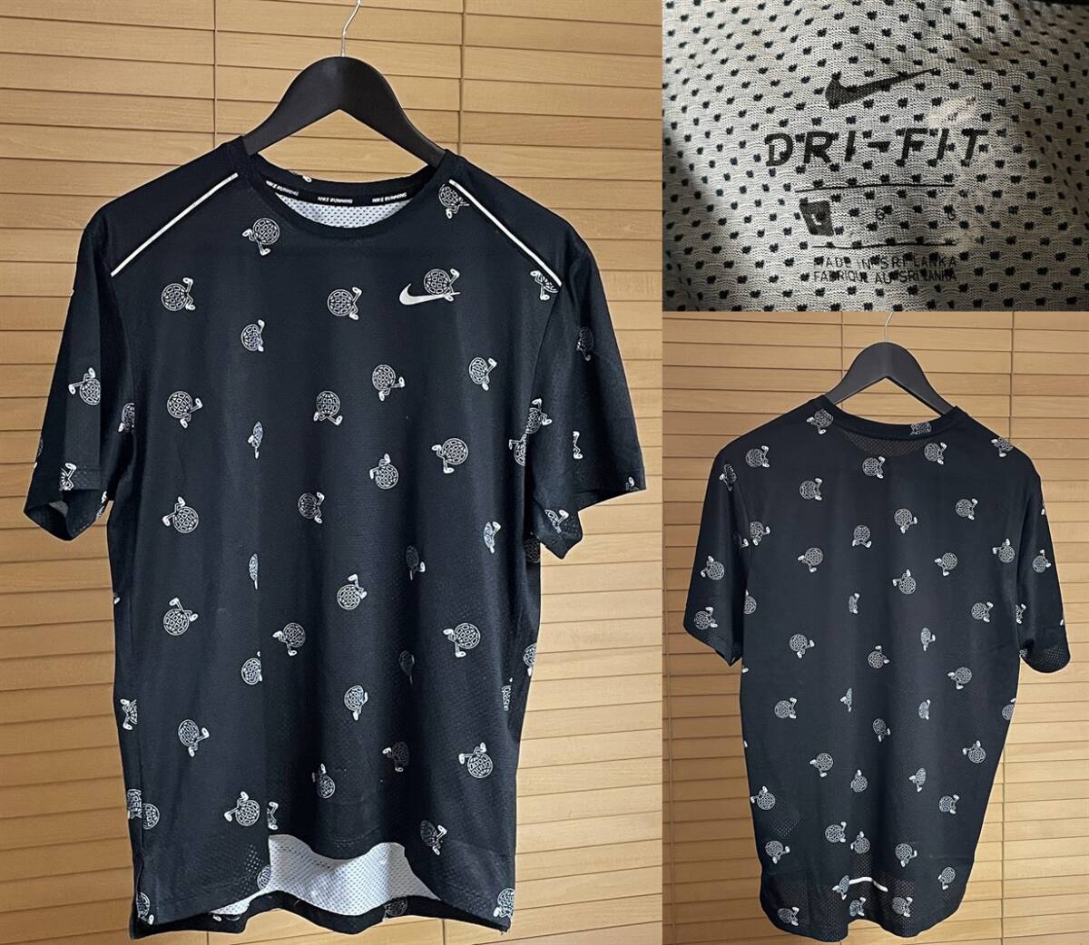 > 【激安1点のみ 国内正規品】NIKE RUNNING ナイキ ランニング DRI-FIT ドライフィット 総柄 プリント 半袖 Tシャツ L ブラック系
