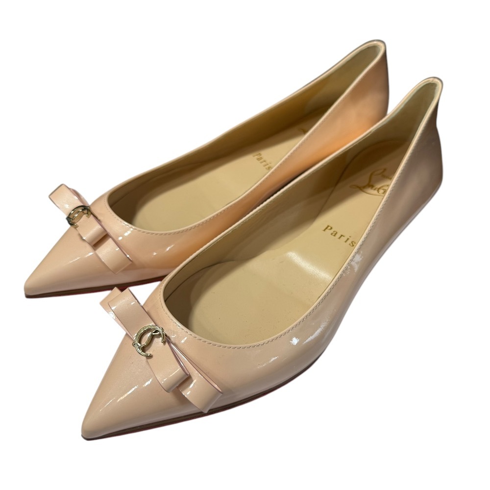 - 未使用 Christian Louboutin クリスチャンルブタン リボン パテントレザー ポインテッドトゥ フラットパンプス 36 1/2 23.5cm相当