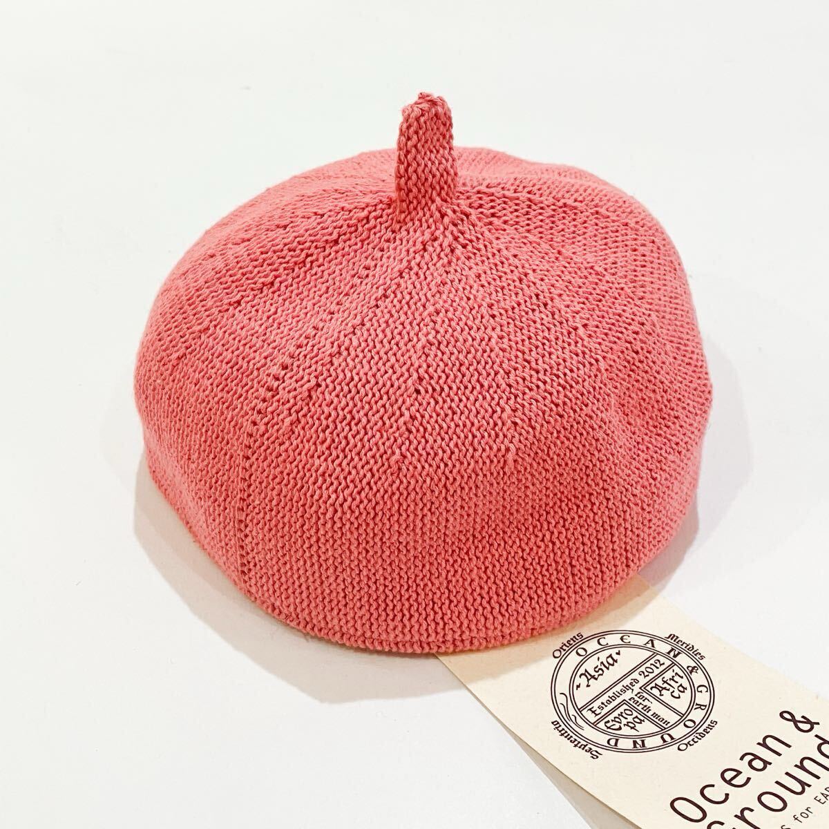 - 【新品未使用】Ocean & Ground オーシャンアンドグラウンド 帽子 ピンク どんぐり 48cm ニット帽 キャップ ベレー帽 ゴム紐 ベビー