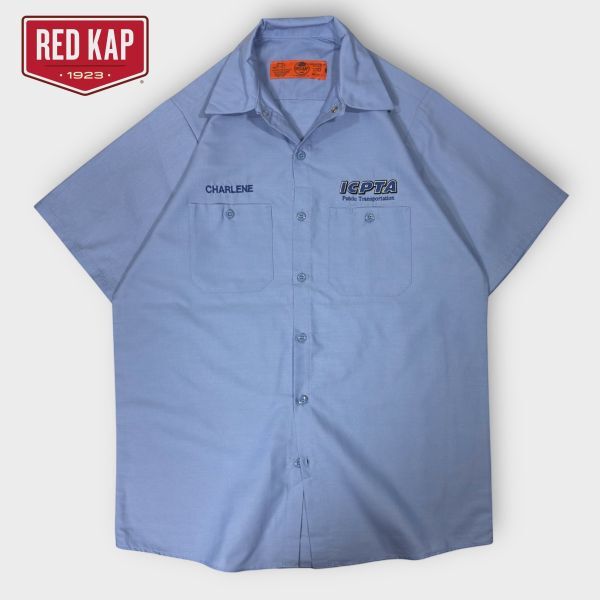 - ★ICPTAロゴ刺繍★RED KAP半袖ワークシャツ sizeM 上部スナップボタン レッドキャップ 古着 クリーニング プレス済み 2454