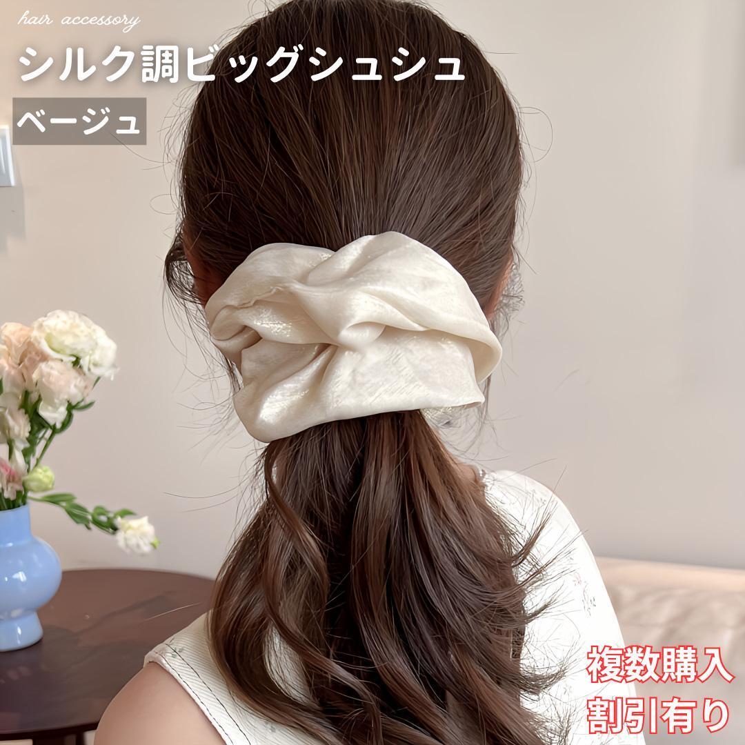 - ヘアアクセ シルク調 大きめ シュシュ ベージュ ヘアゴム 髪飾り 髪留め おしゃれ