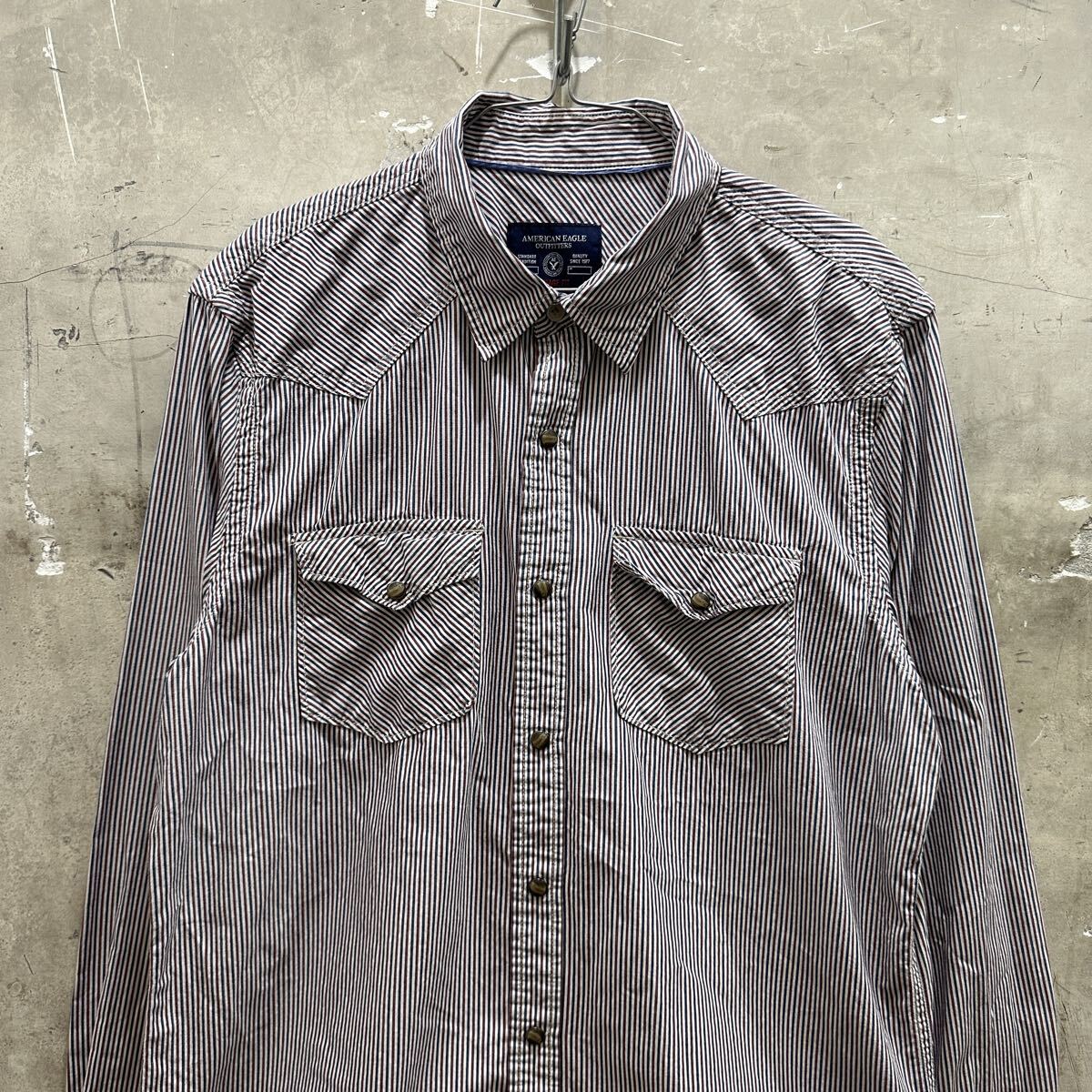 > US古着アメリカンイーグル ストライプウエスタンシャツ 長袖 ビンテージフィット