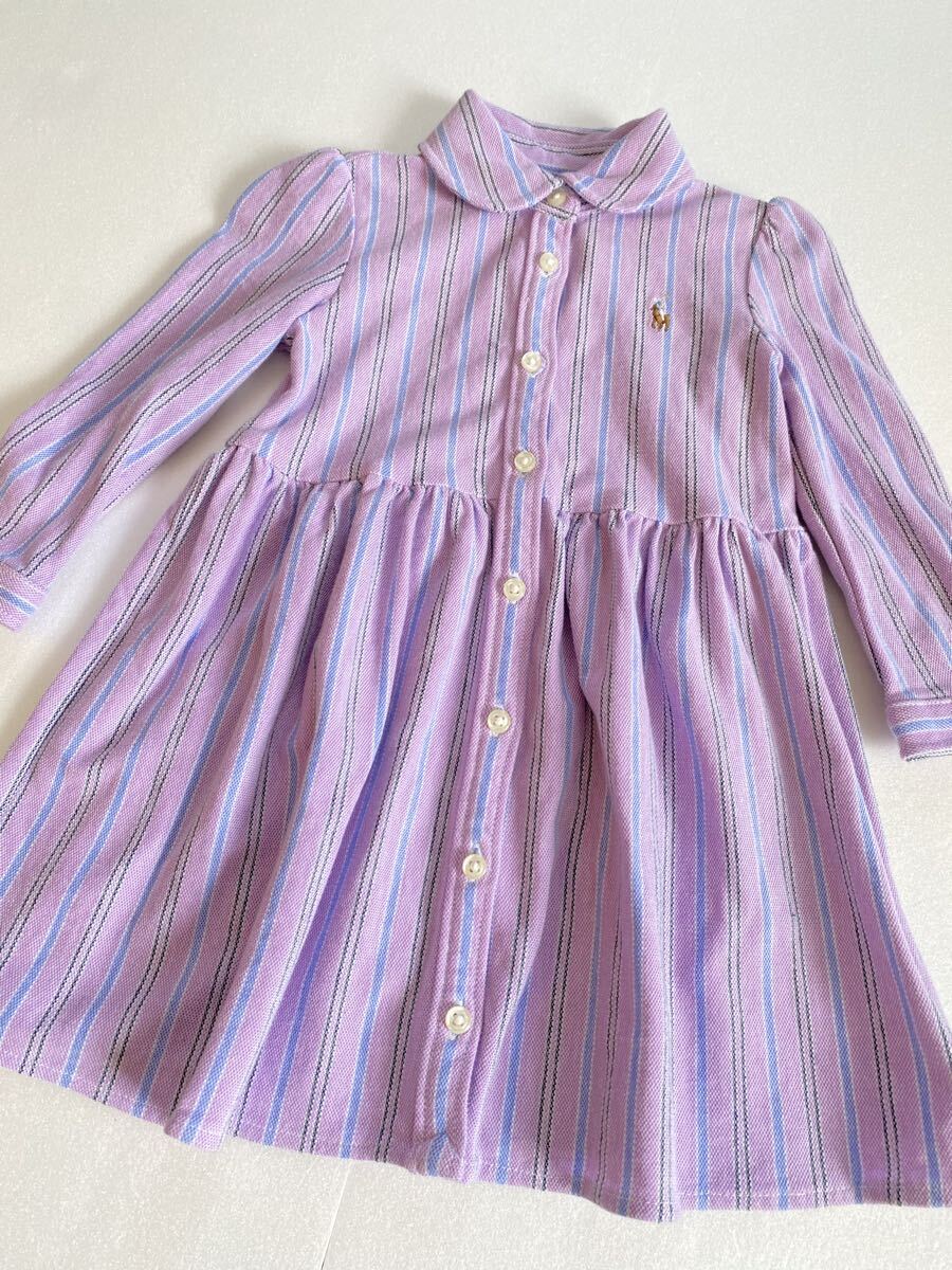- 美品◆RALPH LAUREN ラルフローレン キッズ ダブルストライプ オックスフォード 長袖ワンピース サイズ:12M(80/48) ホース刺繍