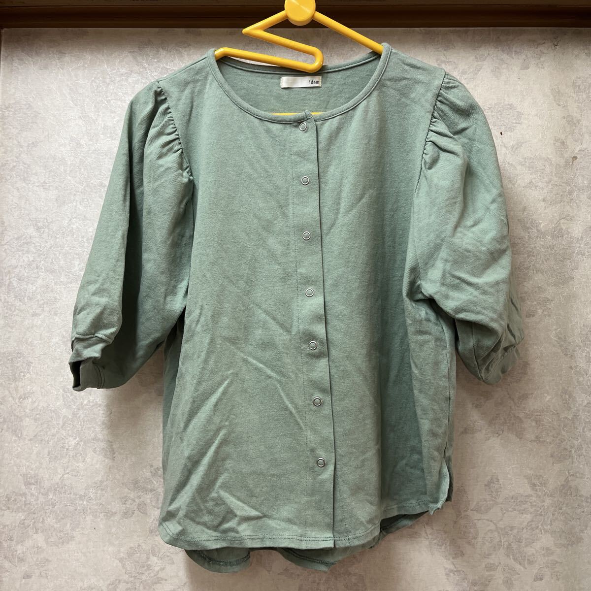- ★idem★イデム 半袖 カットソー カーディガン コットンシャツ F パステルグリーン 綿100% アシンメトリー パフ袖