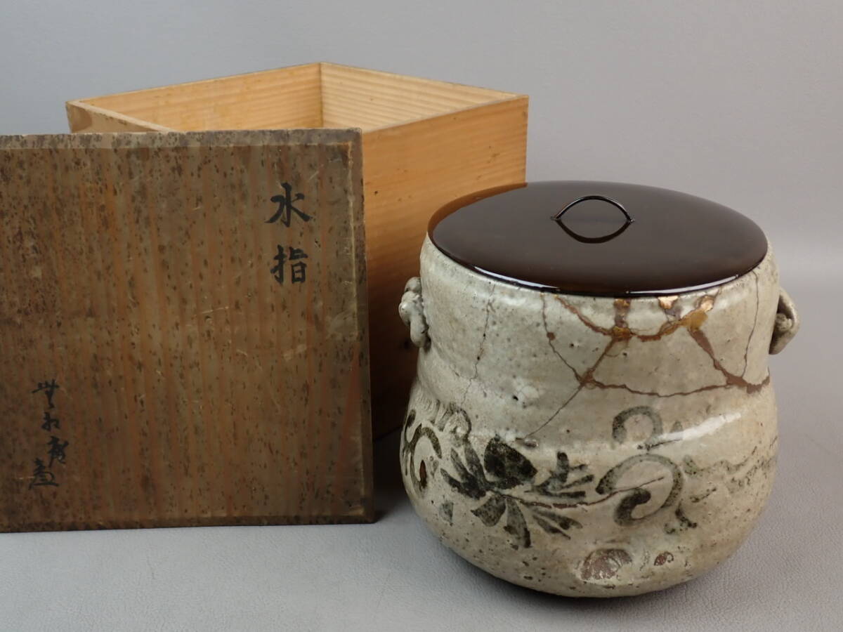 - 【骨董・茶道具】★志野焼?唐津焼?瀬戸焼?★★唐草絵水指 gn048xb
