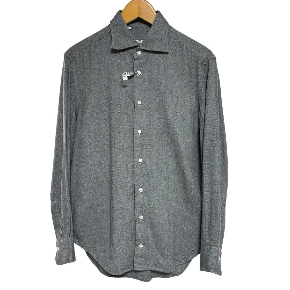 - ※J 【クリーニング済】MARCO ZANINI マルコザニーニ 長袖ワイシャツ グレー ネル生地 綿100% イタリア製 メンズ サイズS
